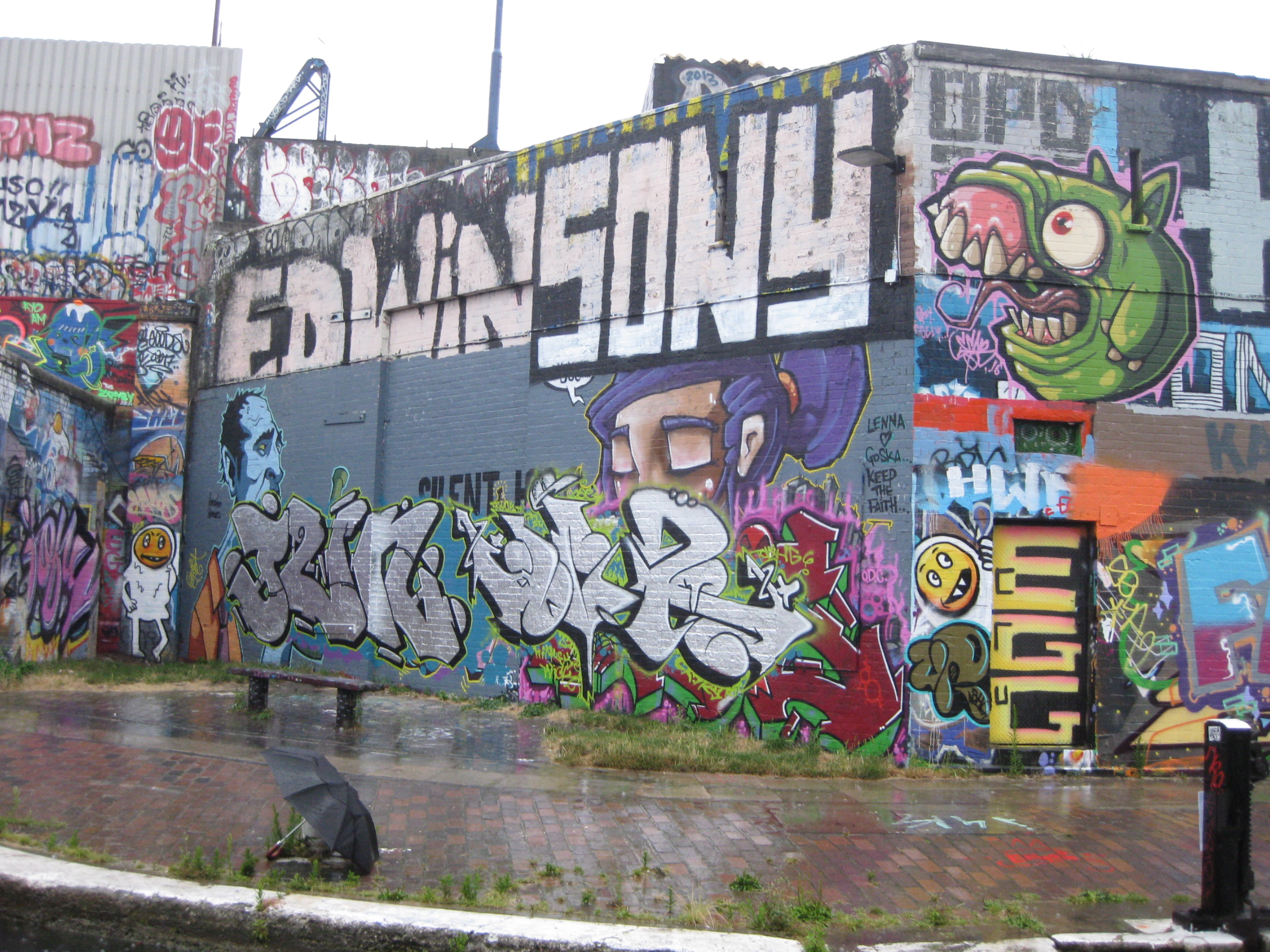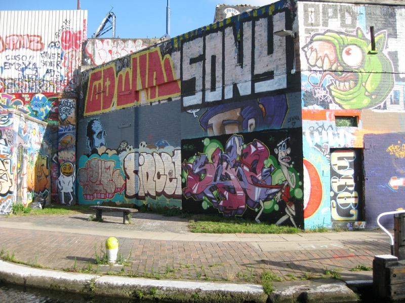 In 2018 the ‘Its Time to Talk’ poster was displayed near the bottom lock. Interesting that the meeting was to be held in the local Senior Citizens Hall - perhaps bringing echoes of the greyhound and speedway era. However, a flyer appearing on the nearby Greenway seems to indicate there were other residents who had arrived in the transient period that would last only until the local high density redevelopment was completed. Those developments are now in sight of being concluded, one marker being the demolition of most, if not all, the lock and canal side walls (and occasionally doors) on which graffiti artists worked. This section shows a few of the many sprays that graced those spaces. Nothing usually lasted long - maybe only one or two days until they started to disappear under new work.