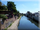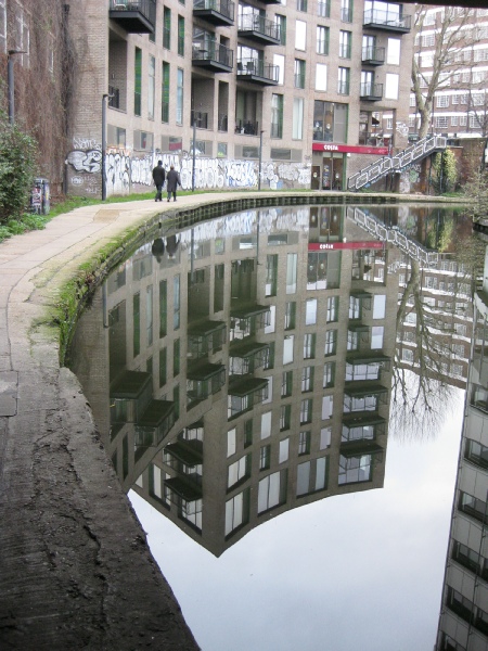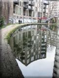 After a couple of turns and passing under a fine brick bridge where you may see the reflection (7) of another development, we will come to the point where William Agar, who caused the canal company a lot of trouble, lived. If you want to see the approximate spot leave the towpath at St Pancras Way, cross the road towards the Constitution pub and turn left. After a few yards you will come to Barker Drive. Turn right here and walk up a little bit and you will arrive at a little open space on the right hand side. No-one will bar us from the land today as navvies, employed by a contractor named Hugh McIntosh, were barred in 1815 because nothing remains of the old Elm Lodge. It is not, however, too difficult to imagine what the view would have been like from the house. The whole of London would have been visible, as it will still be from the most of the floors in the tower block (8). It is, perhaps, understandable that Agar was an early ‘Nimby’, but he subsequently turned the canal to financial advantage. Then, after his death, the area he had leased in 1811 was developed by his son and became known as 'Agar Town'. Short leases were granted on small plots which were developed by speculative builders, who had no interest in investing in the infrastructure. The undrained, unmade roads became channels of mud after rain and sanitary provision was lamentable. Conditions in 'Agar Town' were eventually brought to wider public attention through 'Household Words', a periodical reflecting the social preoccupations of Charles Dickens. Curiously, Dickens had lived within a few hundred yards of Elm Lodge when he was a boy, having arrived in London two years after the canal was opened. Perhaps he saw Counsellor Agar once or twice.