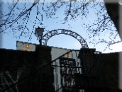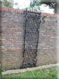 Continuing towards Limehouse you will pass the premises of the Mile End Climbing Wall and then walk under a railway bridge. The railway line crosses Grove Road on another bridge a couple of hundred yards away and here a plaque indicates the first V1 flying bomb landed in London in 1944. Three years earlier the East End had been subjected to the Blitz and unexploded bombs from that air offensive are still turning up, a large one being found close to the canal in May 2007. There was great apprehension of the effects of bombing on London prior to the war and huge numbers of metal stretchers were produced to carry casualties. When the war was over these were usually scrapped, but a few are still dotted about, put to other uses. Sometimes they were welded together to make railings but the one in photograph 8 is in Hackney, a few hundred yards south of the Cat and Mutton bridge, where it serves as a climbing frame for plants.