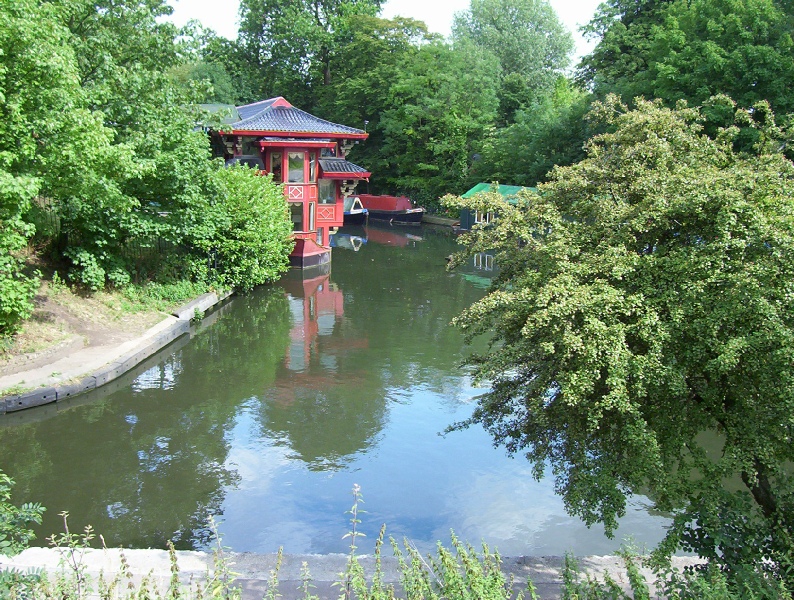 Not long after the canal was opened London Zoo was established in Regents Park. You will pass into the environs of this soon after the bridge and, if you are lucky, you may see some of the animals belonging to the zoo wandering along the south bank. Don’t worry, the fence is strong and they won’t break out. On the towpath side is the Snowden Aviary, which houses a variety of exotic birds. It was built on the north bank in the early 1960s and you will pass very close to it. Curiously, the aviary sometimes attracts quite a number of local birds who cling to the mesh and seem to want to get in and join the captives. I wonder if some of those are distant descendants of the birds that lived in the zoo's western aviary prior to the 1874 explosion. When a hole was blown in the roof many birds escaped and some evidently took up residence in the counties around London, for the Superintendent began to receive letters saying that strange and beautiful birds had been seen in country gardens. Since its inception the whole park, with its plentiful supply of water (listen for the waterfall), has always been something of a haven for birdlife and currently has a wide range of residents and migratory visitors.