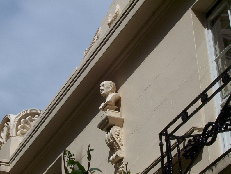 A couple of hundred yards after the zoo the canal leaves the environs of the park. It was at this point that the collateral cut towards the New Road was built and is where, in 1816, the first opening celebration on the canal took place. Cumberland Market was eventually built close to the cut and in 1830 the hay market that once stood south of Piccadilly Circus was transferred here. A huge ice well was constructed too, the final destination of blocks of ice shipped across the North Sea from Norway. Trade along the cut declined prior to the Second World War and much of it was eventually filled in with bomb site rubble. All that remains is a small inlet, but a floating Chinese restaurant is moored at the junction (5). Should you have time to make a small diversion you can climb the steps by the bridge close to the junction and walk down Prince Albert Road towards Park Village East. Here you will find terraces which were erected by John Nash (6) and if you look carefully you will see a small bust of the architect on one of the houses (7).