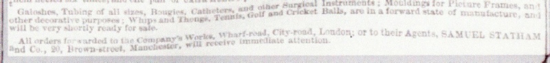 Before leaving for America Robert wrote to his missionary brother suggesting it might be worthwhile taking his innovation forward. This James did, producing a ball that was, at least in his own eyes, of a satisfactory standard. In 1846, he sent a sample to London but found it generated little interest, which must have been a disappointment. Perhaps if the label on his package had shown ‘To the Gutta Percha Company, 18 Wharf Road, City Road’, there might have been a better reaction, but that is not necessarily the case. In 1846 the Gutta Percha Company was constantly expanding its product range, but, as yet, did not offer anything to do with sport. However, if a golf ball from South-East Asia had turned up it could well have influenced a decision to look more closely at the possibility of expanding the sales list to include balls used in a variety of games, although it would probably have been thought unnecessary to acknowledge this publicly.
