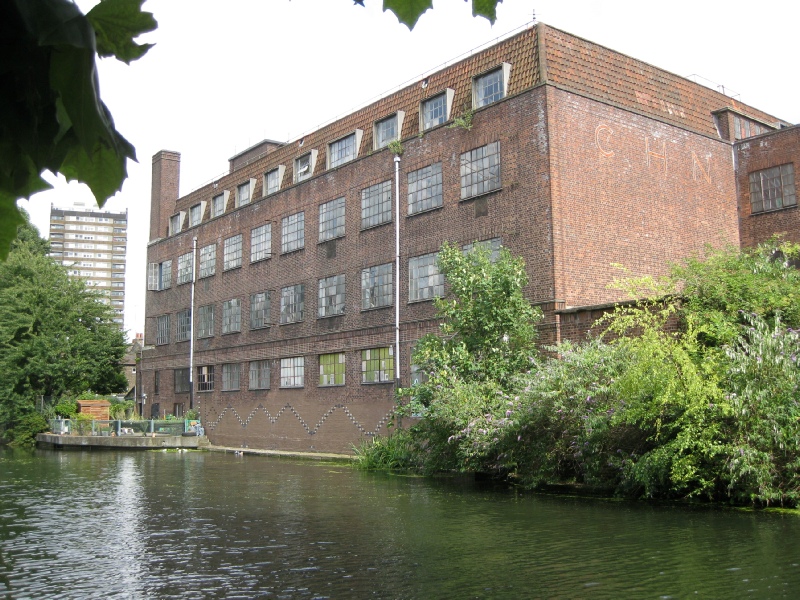 It is not only a commercial gym and a banqueting suit which have utilised the old industrial buildings on the Cut. As you pass under Grove Road bridge, hard by a modern residential development on the south bank, you will see a derelict redbrick building, with smashed glass panes in the windows frames. This abuts another, in a better state of repair, which has CHN on the side (3). In their heyday these buildings were linked to the veneer trade. CHN stood for CHN Veneers, which had been established by an entrepreneur named Morris Cohen in the 1930s. Perhaps surprisingly the factory was expanded and rebuilt in the middle of the Second World War, but this was to facilitate the production of war material, including propellers and plywood for the de Havilland Mosquito, a fast twin-engined aircraft that was constructed almost entirely of wood. When the war was over veneer production continued in what was called the Chisenhale Works, until the 1970s. In that decade there was something of a revival of brewing in London and for a period after the closure of CHN barrels of Godson’s Black Horse bitter might have been seen being loaded into barges adjacent to the defunct factory. The brewery did not stay long, however, and in the 1980s the Chisenhale Works became an arts centre with studios for dancers and artists. Well known just as the Chisenhale, it is still used in this way today. Click here to find out more.