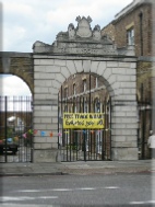 Adjacent to Ratcliffe Highway, a very old road that gave access to wharves and docks on the north bank of River Thames, is Free Trade Wharf. It is now a riverside apartment block (the entrance in the photo to the right is shown as it was at the time the Tour de France was about to pass in July 2014) but was originally constructed to serve the shipping business in 1856 (MCV1 is carved on the on the arch). The name reflects a principal of commerce which, it was hoped, would help ensure a good financial return for those who built it. The idea of free trade meant, according to the supportive theorists of the time, that great benefits would accrue to everybody once protective tariffs were removed and goods allowed to pass without let or hindrance across the oceans. In Britain one result of this movement had been the repeal of the Corn Laws, imposed after the Napoleonic Wars to protect agricultural interests.
