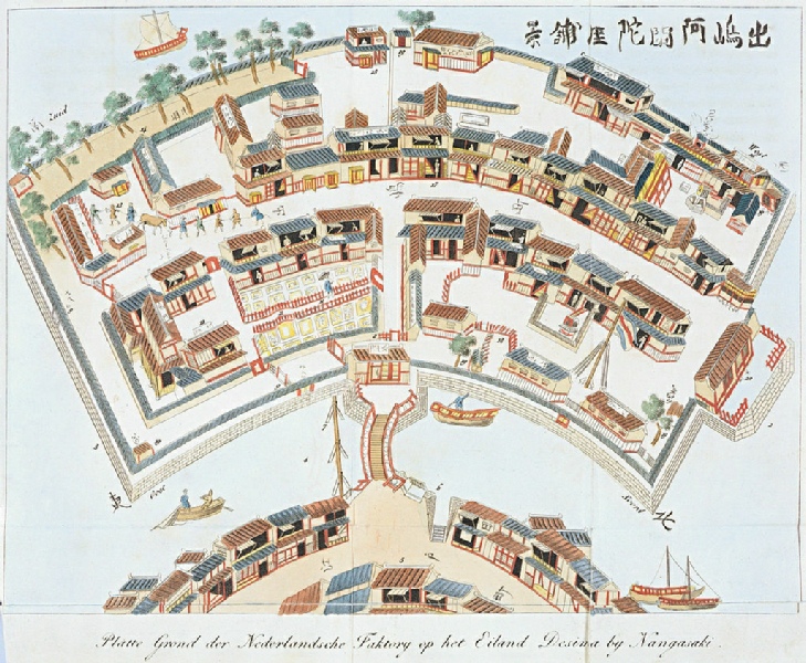 Nagasaki had been the only direct point of contact between the West and Japan since the time the isolationist policy of Sokaku had been imposed over two centuries previously. On Dejima, a very small and very closely monitored island, linked to main town by a footbridge, a handful of traders had maintained the trade of the VOC, as the Dutch East India Company was known. The Dutch were tolerated by the Japanese because they were Protestant and did not seek converts in the way Catholic missionaries of the C16th and C17th had. Given the favoured status of the Dutch, who were required to provide the Japanese government with regular reports on what was happening in the rest of the world, and the value of trade to the VOC and so to Holland itself, it is little wonder that there was a desire to shield commercial information from potential competitors. Krusenstern, although he arrived a few years after the VOC had been dissolved, was to complain;