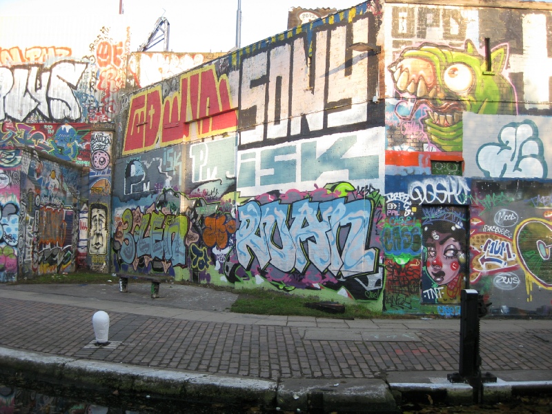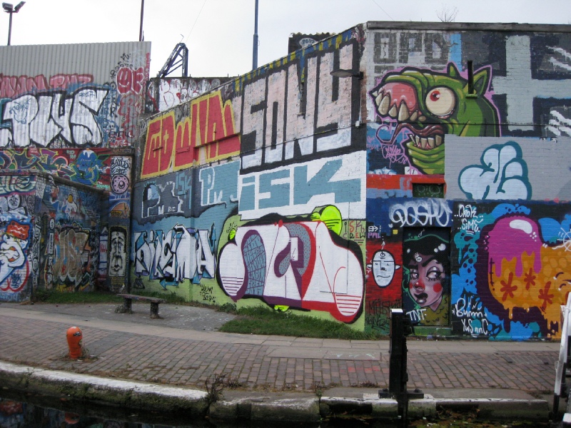 In 2018 the ‘Its Time to Talk’ poster was displayed near the bottom lock. Interesting that the meeting was to be held in the local Senior Citizens Hall - perhaps bringing echoes of the greyhound and speedway era. However, a flyer appearing on the nearby Greenway seems to indicate there were other residents who had arrived in the transient period that would last only until the local high density redevelopment was completed. Those developments are now in sight of being concluded, one marker being the demolition of most, if not all, the lock and canal side walls (and occasionally doors) on which graffiti artists worked. This section shows a few of the many sprays that graced those spaces. Nothing usually lasted long - maybe only one or two days until they started to disappear under new work.
