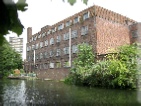 It is not only a commercial gym and a banqueting suit which have utilised the old industrial buildings on the Cut. As you pass under Grove Road bridge, hard by a modern residential development on the south bank, you will see a derelict redbrick building, with smashed glass panes in the windows frames. This abuts another, in a better state of repair, which has CHN on the side (3). In their heyday these buildings were linked to the veneer trade. CHN stood for CHN Veneers, which had been established by an entrepreneur named Morris Cohen in the 1930s. Perhaps surprisingly the factory was expanded and rebuilt in the middle of the Second World War, but this was to facilitate the production of war material, including propellers and plywood for the de Havilland Mosquito, a fast twin-engined aircraft that was constructed almost entirely of wood. When the war was over veneer production continued in what was called the Chisenhale Works, until the 1970s. In that decade there was something of a revival of brewing in London and for a period after the closure of CHN barrels of Godson’s Black Horse bitter might have been seen being loaded into barges adjacent to the defunct factory. The brewery did not stay long, however, and in the 1980s the Chisenhale Works became an arts centre with studios for dancers and artists. Well known just as the Chisenhale, it is still used in this way today. Click here to find out more.