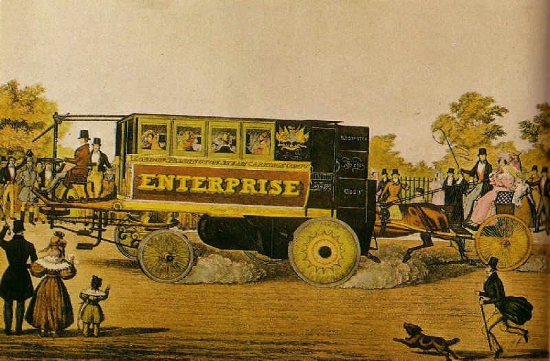 Walter Hancock also found success in his first quarter of a century in London but in a very different field. His skills lay in designing and producing machines, although unlike Thomas he did not have matching business acumen. Nonetheless, also working from Stratford and financially supported by his elder brother, he developed road going steam vehicles, including omnibuses. The innovative mode of transport did not always meet with public acclaim for if a carriage ran out of steam and was marooned on the road the driver might, according to Walter, be assailed with hootings, yellings, hissings and sometimes with the grossest abuse. However, he persevered and, as attitudes changed, eventually began running regular omnibus services on several routes. A terminus was established at Paddington and there seems to have been a good demand for seats on a service running into London. So whilst boats arriving along the Grand Junction waited to access the Regents Canal and continue their slow, twelve-lock journey down to Limehouse, anyone hurrying to the commercial centre of the capital could board the Enterprise, one of Hancock’s ultra-modern steamers, and speed off at about ten miles an hour in the direction of the Tower of London. Despite this popularity and for a variety of reasons, which included, as Walter lamented, a want of suitable premises and stations for the store of coke and supply of water, the era of the steam road carriage soon drew to a conclusion. Consequently, at the start of the 1840s Walter decided to close his business although he was so indebted he could not do that with the grace of his father’s retirement and in 1844 he was declared bankrupt.